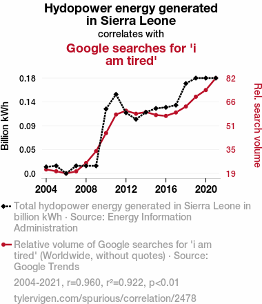- The spurious research paper: Chronic Fatigue or Hydroelectric Brute? The Link between Hydropower in Sierra Leone and Google Searches for 'I Am Tired'