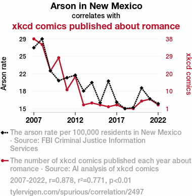 - The spurious research paper: Burning Love: Exploring the Relationship Between Arson in New Mexico and xkcd Comics on Romance