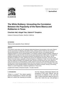 The White Robbery: Unraveling the Correlation Between the Popularity of the Name Blanca and Robberies in Texas Journal of Eccentric Sociological Studies Jan 2024 Reminder: This paper is AI-generated. Not real! |