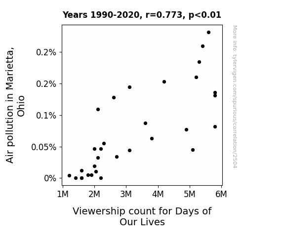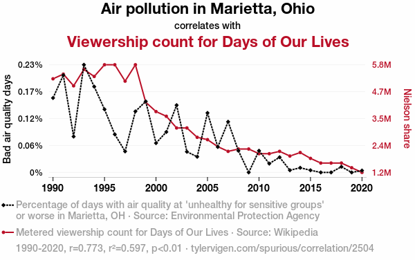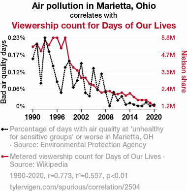 - The spurious research paper: Pollution and Plotlines: Probing the Relationship between Air Pollution in Marietta and the Viewership of Days of Our Lives