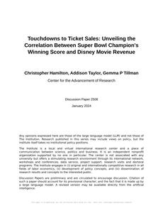 Touchdowns to Ticket Sales: Unveiling the Correlation Between Super Bowl Champion's Winning Score and Disney Movie Revenue The Journal of Sports Economics and Pop Culture Jan 2024 |