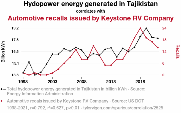 - The spurious research paper: Pulling the Plug: Exploring the Shocking Connection between Hydropower Energy in Tajikistan and Automotive Recalls by Keystone RV Company