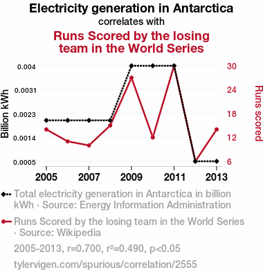 electricity generation, Antarctica, World Series, losing team, correlation, statistical analysis, Energy Information Administration, Wikipedia, correlation coefficient, remote electricity generation, sports dynamics