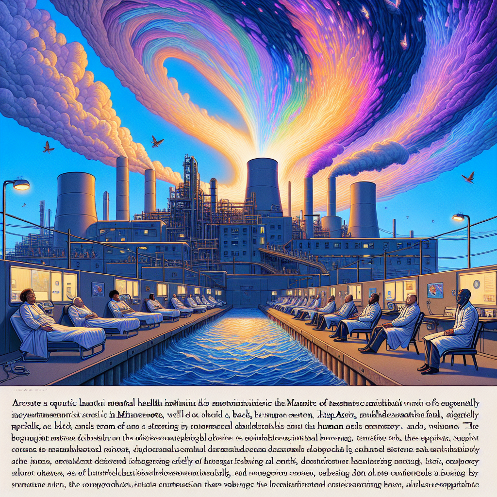 ChatGPT: Generate an image of a serene Minnesota mental health institution, where a line of psychiatric aides, disguised as humans, stands in formation, silently observing the patients. Their alien technology hums quietly in the background as they collect data on human behavior. Suddenly, a ripple in the Earth's electromagnetic field causes a commotion, leading to a chain reaction that resonates across the globe. In Romania, a gleaming jet fuel production facility is momentarily disrupted as the strange disturbance manifests itself in a stream of vibrant light, casting an otherworldly glow on the surrounding landscape. The scene should capture the juxtaposition of the simple, serene setting of the mental health institution with the otherworldly disruption in Romania.