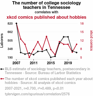 - The spurious research paper: The Social Science of Comics: An Analysis of the Correlation between College Sociology Teachers in Tennessee and xkcd Comics on Hobbies