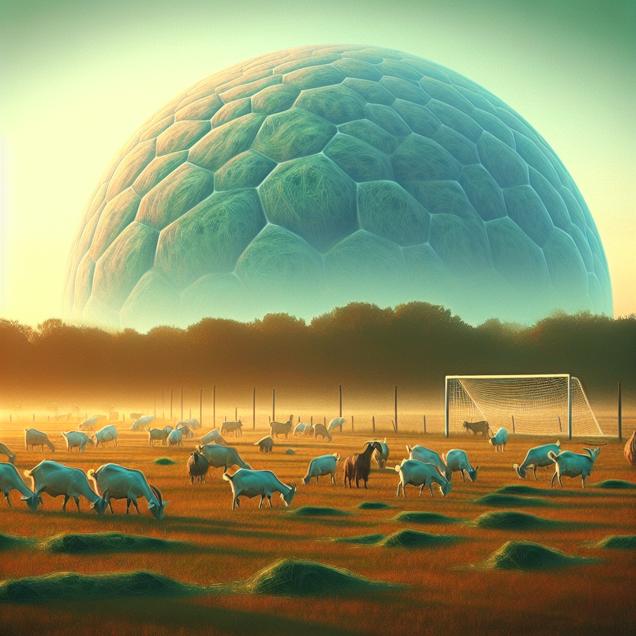 Prompt: Image Generation Prompt: Generate an image reflecting a tranquil Louisiana field where a group of goats graze on subpar-quality hay, their morale visibly low. In the background, an empty soccer net is visible, with the scoreboard showing fewer goals than usual. The shortage of agricultural sciences teachers in Louisiana is impacting the quality of hay, which in turn is affecting the performance of Craig Bellamy's farm animals, and ultimately his ability to score goals in club football. The visual should capture the sense of tranquility, the goats grazing, and the impact of hay quality on the environment. The depiction should include only scenes, people, and objects, it should not include text or speech bubbles.