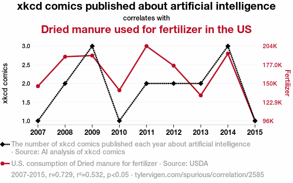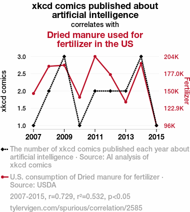 - The spurious research paper: AI-lly Funny: Analyzing the Link between XKCD Comics on Artificial Intelligence and Dung Dealings in the US Fertilizer Market