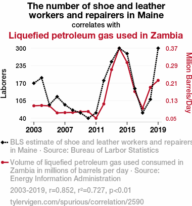 - The spurious research paper: Putting the Sole in LPG: The Unlikely Link between Shoe and Leather Workers in Maine and Liquefied Petroleum Gas Usage in Zambia
