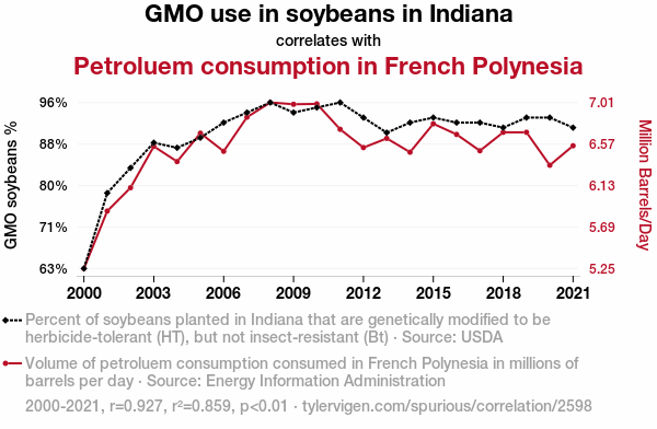 genetically modified soybeans, Indiana, petroleum consumption, French Polynesia, global phenomenon, USDA data, Energy Information Administration, agricultural biotechnology, energy consumption, correlation analysis, global interdependencies
