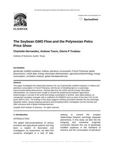 User prompt: Please provide potential search keywords for a paper titled The Soybean GMO Flow and the Polynesian Petro Price Show with an abstract of This paper investigates the relationship between the use of genetically modified soybeans in Indiana and petroleum consumption in French Polynesia, with the aim of shedding light on a surprisingly interconnected global phenomenon. Utilizing data from the USDA and the Energy Information Administration, our research team sought to unravel the perplexing link between agricultural biotechnology in one part of the world and energy consumption in another.