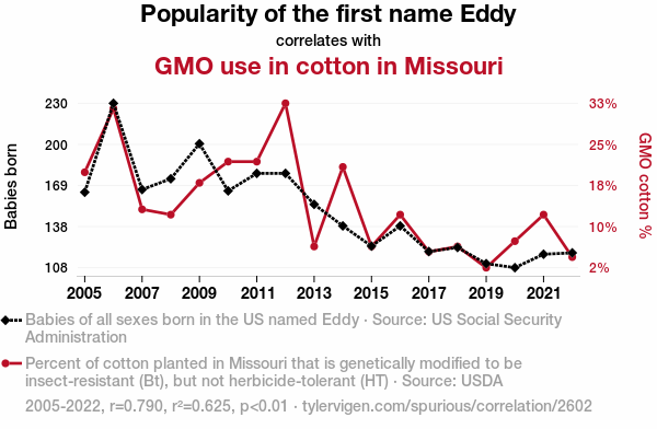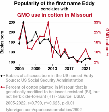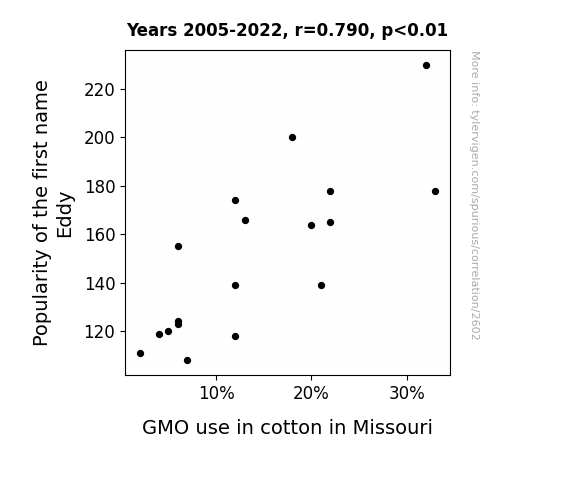 - The spurious research paper: Cotton-pickin' Eddys: Exploring the Correlation between Eddy Popularity and GMO Cotton in the Show-Me State