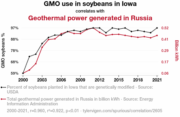 - The spurious research paper: Soylent Green and Clean Power: Unveiling the Soy-Ful Connection between GMO Soybeans in Iowa and Geothermal Energy in Russia