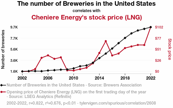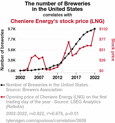 - The spurious research paper: Brewing Up Financial Stability: The Fermented Economics of Breweries and Cheniere Energy's Stock Price