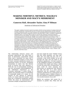 - The spurious research paper: Making Mirthful Metrics: Malika's Moniker and Macy's Merriment