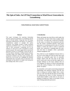 Please draft the title and abstract of an academic research paper presenting the findings of the connection between Wind power generated in Luxembourg and Sales of LP/Vinyl Albums. You can't resist a good dad joke. Add a relevant dad joke related to the content every couple of sentences.