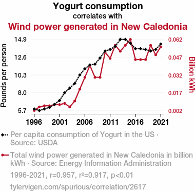 yogurt consumption, wind power, correlation, New Caledonia, renewable energy, dairy industry, sustainable living, USDA data, Energy Information Administration, correlation coefficient, underlying mechanism