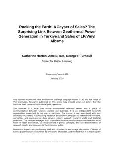 User prompt: Please provide potential search keywords for a paper titled Rocking the Earth: A Geyser of Sales? The Surprising Link Between Geothermal Power Generation in Turkiye and Sales of LP/Vinyl Albums with an abstract of In the realm of geothermal energy and music consumption, an unexpected connection has been unearthed. This study explores the correlation between geothermal power generation in Turkiye and sales of LP/vinyl albums, uncovering a seismic relationship that may just rock the foundations of both industries.