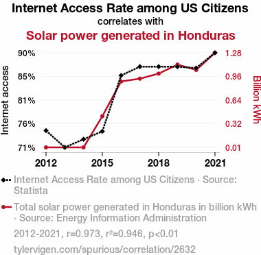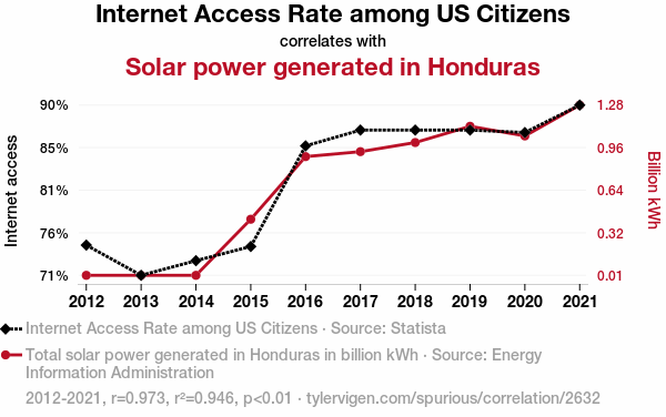 - The spurious research paper: E-nergy Connection: Shedding Light on the Link between Internet Access Rates in the US and Solar Power Generation in Honduras