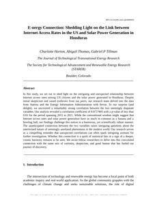 E-nergy Connection: Shedding Light on the Link between Internet Access Rates in the US and Solar Power Generation in Honduras The Journal of Technological Transnational Energy Research Jan 2024 Reminder: This paper is AI-generated. Not real! |