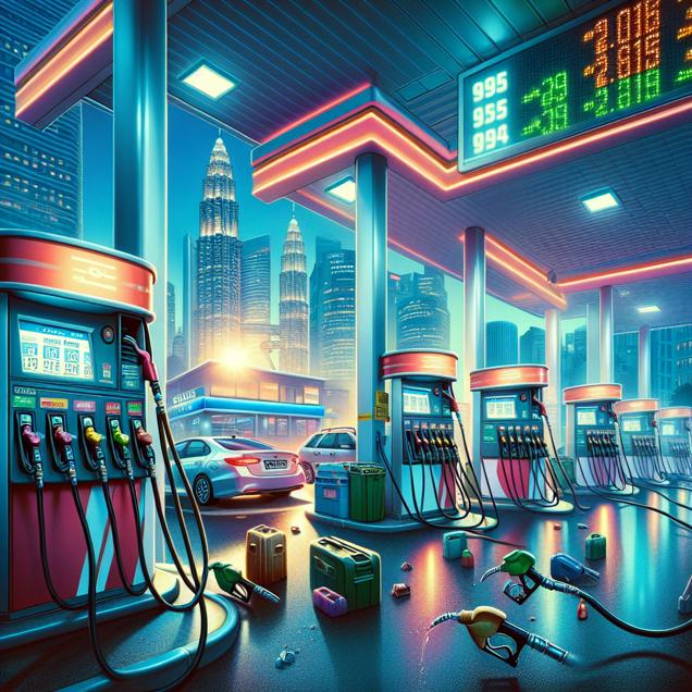 User prompt: Please respond with an image generation prompt that would be likely to create an interesting visual using DALLE-3, using the following style: [ A Discovery magazine cover image ] and depicting this scene: In a bustling Singapore gas station, a row of shiny pumps dispenses a steady stream of gasoline into waiting cars. The air is filled with the scent of fuel as the number of cars being fueled steadily increases. Meanwhile, on a nearby digital screen, the stock price of Hess Corporation (HES) rises rapidly, reflecting the surge in investor enthusiasm caused by the fumes of the extra gasoline. Keep the visual depiction simple. Do not include any words or speech bubbles.