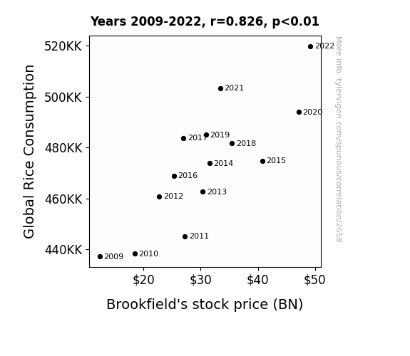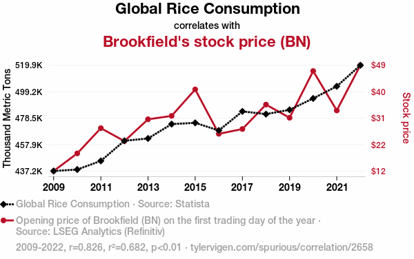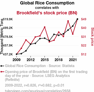 - The spurious research paper: Rice Rage: Relationship between Global Rice Consumption and Brookfield's BN stock price