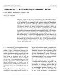 User prompt: Please provide potential search keywords for a paper titled Mind Over Stock: The Psy-stock-ology of Lululemon's Success with an abstract of In this study, we delve into the curious correlation between the number of Master's degrees awarded in Psychology and the stock price of the athletic apparel company Lululemon (LULU). As researchers who believe in the power of positive thinking and good humor, we couldn’t resist the opportunity to find out if there's a psychological connection to Lululemon's success.