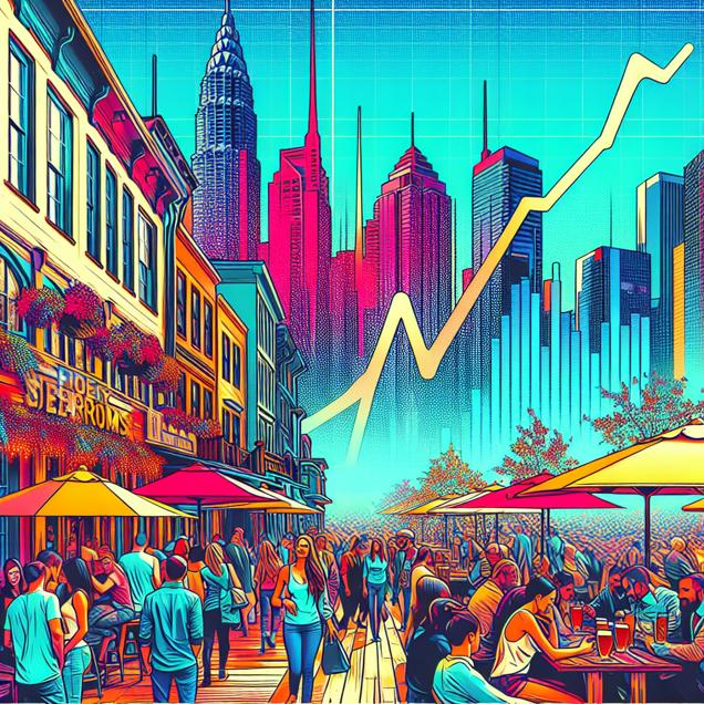 User prompt: Please respond with an image generation prompt that would be likely to create an interesting visual using DALLE-3, using the following style: [ A TIME magazine cover image ] and depicting this scene: In a bustling city, the number of breweries in the United States is represented by a row of trendy craft beer taprooms, each one bustling with enthusiastic patrons. Alongside them, the stock price of Edwards Lifesciences (EW) is depicted as a graph trending upwards, mirroring the excitement and demand for heart valves due to the increased consumption of beer at these lively social hotspots. Keep the visual depiction simple. Do not include any words or speech bubbles.