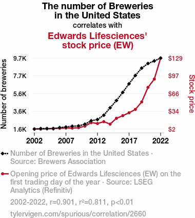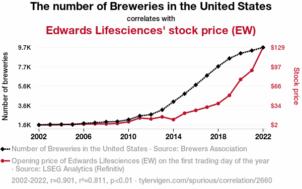 - The spurious research paper: Brewing up Stock Success: The Fermentation of Breweries in the United States and Edwards Lifesciences' Stock Price