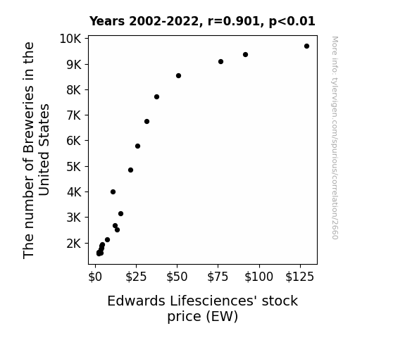 This research paper investigates the relationship between the proliferation of breweries in the United States and the stock price of Edwards Lifesciences (EW), using data from the Brewers Association and LSEG Analytics (Refinitiv). We use statistical analysis to delve into the frothy question of whether the number of breweries can predict fluctuations in Edwards Lifesciences' stock price. Our findings reveal a correlation coefficient of 0.9007346 and p < 0.01 over the period from 2002 to 2022.