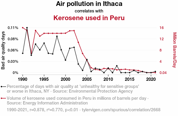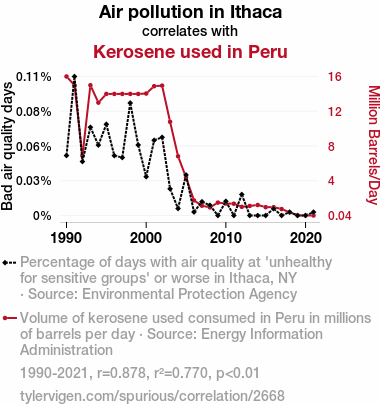 - The spurious research paper: Correlating Kerosene Consumption in Peru with Air Pollution in Ithaca