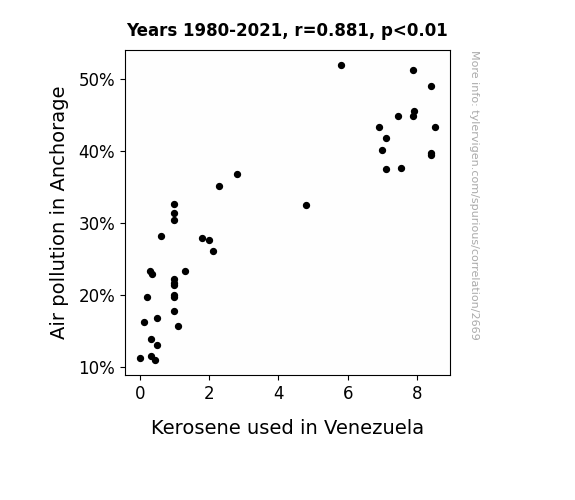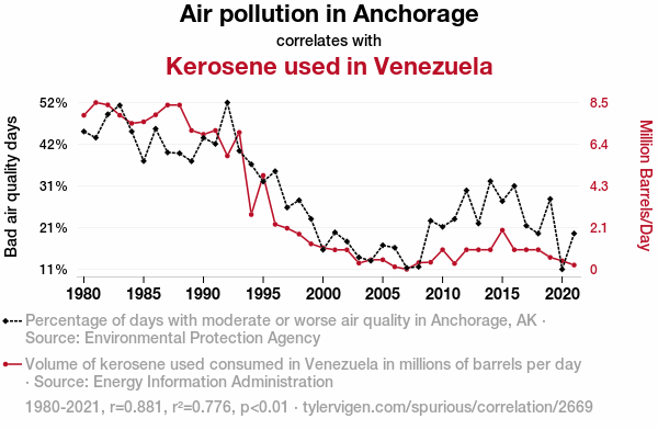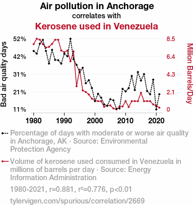 - The spurious research paper: Anchorage's Air Pollution and Venezuela's Vapor: A Statistical Analysis