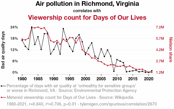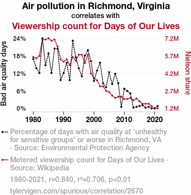- The spurious research paper: Air Pollution: A Soap Opera for Days of Our Lives Viewership in Richmond, Virginia