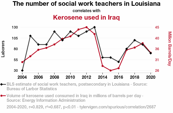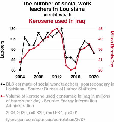- The spurious research paper: Estimating the Net Work: A Statistical Examination of Social Work Teachers in Louisiana and Kerosene Consumption in Iraq