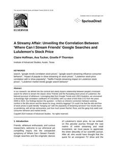 A Streamy Affair: Unveiling the Correlation Between 'Where Can I Stream Friends' Google Searches and Lululemon's Stock Price The Journal of Internet Quirks and Market Trends Jan 2024 Reminder: This paper is AI-generated. Not real! |