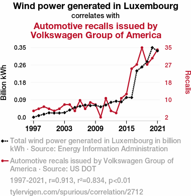 - The spurious research paper: Blowing in the Wind: An Empirical Study on the Relationship between Wind Power in Luxembourg and Automotive Recalls Issued by Volkswagen Group of America
