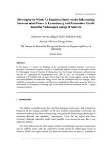 Blowing in the Wind: An Empirical Study on the Relationship between Wind Power in Luxembourg and Automotive Recalls Issued by Volkswagen Group of America