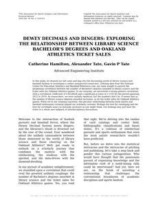 User prompt: Please provide potential search keywords for a paper titled Dewey Decimals and Dingers: Exploring the Relationship Between Library Science Bachelor's Degrees and Oakland Athletics Ticket Sales with an abstract of In this study, we donned our lab coats and dug into the fascinating world of library science and baseball fandom to investigate a rather unexpected connection. Utilizing data from the National Center for Education Statistics and Baseball-Reference.com, our team sought to unravel the perplexing correlation between the number of Bachelor's degrees awarded in library science and the ticket sales for Oakland Athletics games. To our surprise, we uncovered a strong positive correlation, with a correlation coefficient of 0.8224628 and a significant p-value of < 0.05 for the period spanning 2012 to 2019.