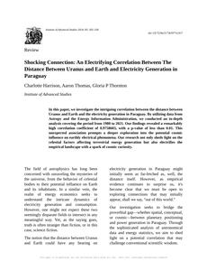 Shocking Connection: An Electrifying Correlation Between The Distance Between Uranus and Earth and Electricity Generation in Paraguay The Journal of Astroelectrodynamics Jan 2024 Reminder: This paper is AI-generated. Not real! |