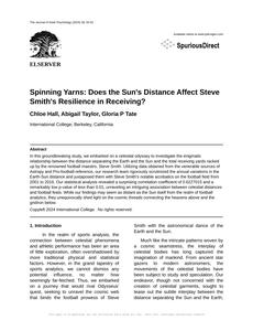 Spinning Yarns: Does the Sun's Distance Affect Steve Smith's Resilience in Receiving? The Journal of Solar Psychology Jan 2024 Reminder: This paper is AI-generated. Not real! |
