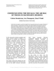 "Communicating the Recalls: The Air Bag of Tricks in Bachelor's Degrees"