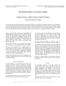 Please make up the introduction section of an academic research paper presenting the findings of the connection between Popularity of the first name Braden and National Lacrosse Champions' Final Point. You can't resist a good dad joke. Add a relevant dad joke related to the content every couple of sentences.