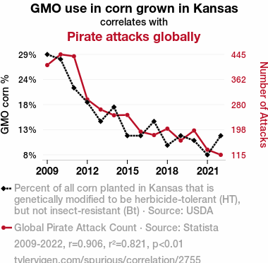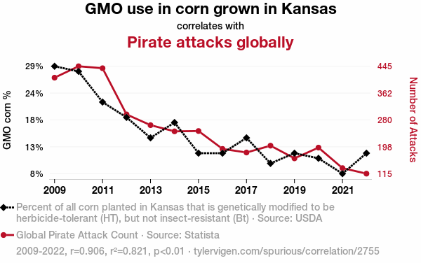 - The spurious research paper: Amaizeing Pirates: Unraveling the Strange Affair Between GMO Corn in Kansas and Global Pirate Attacks