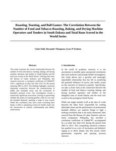 Roasting, Toasting, and Ball Games: The Correlation Between the Number of Food and Tobacco Roasting, Baking, and Drying Machine Operators and Tenders in South Dakota and Total Runs Scored in the World Series The Journal of Culinary and Sporting Analytics Jan 2024 Reminder: This paper is AI-generated. Not real! |