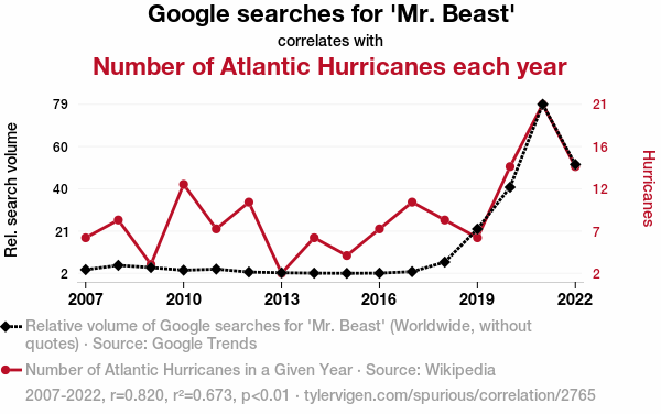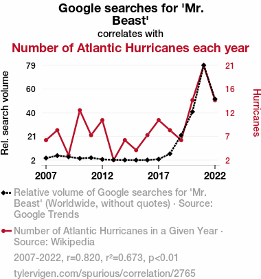 "Mr. Beast" popularity, Atlantic hurricane activity, Google Trends data analysis, popular culture influence on weather, statistical analysis of meteorological events, correlation between internet search trends and hurricanes, unusual variables in statistical analysis, influence of popular culture on environmental phenomena