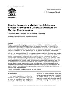 Clearing the Air: An Analysis of the Relationship Between Air Pollution in Decatur, Alabama and the Marriage Rate in Alabama The Journal of Ecological Quirks Jan 2024 Reminder: This paper is AI-generated. Not real! |