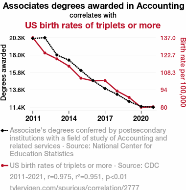 - The spurious research paper: Balancing the Books: An Examination of the Correlation between Associates Degrees in Accountancy and the Birth Rate of Triplets or More in the United States