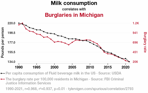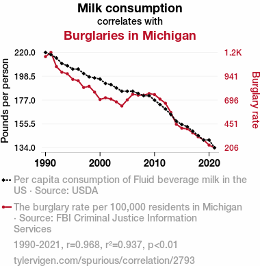 - The spurious research paper: Milk Chug-A-Lug and Burglary Huggerie: An Udderly Surprising Connection in Michigan