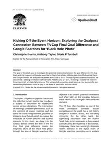 User prompt: Please provide potential search keywords for a paper titled Kicking Off the Event Horizon: Exploring the Goalpost Connection Between FA Cup Final Goal Difference and Google Searches for 'Black Hole Photo' with an abstract of The goal of this study was to investigate the potential relationship between the goal difference in FA Cup finals and the frequency of Google searches for 'black hole photo'. Utilizing data from My Foot Ball Facts and Google Trends, we analyzed the periods from 2009 to 2021. Through rigorous statistical analysis, we discovered a striking correlation coefficient of 0.7936861 and p < 0.01, revealing a notable link between these seemingly unrelated phenomena. This unexpected connection could open up new avenues for pun-derstanding the cosmic forces at play in the world of sports and popular culture.