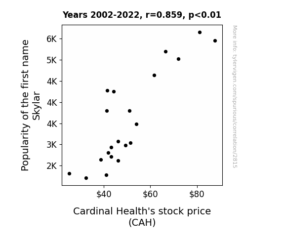 Does the popularity of baby names have an impact on stock prices? In this paper, we dig into the correlation between the increasing trend in the first name Skylar and the fluctuation of Cardinal Health's stock (CAH). Through an innovative mix of data from the US Social Security Administration and LSEG Analytics (Refinitiv), we uncover a surprising relationship that may raise eyebrows – or Sklylar(s).