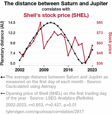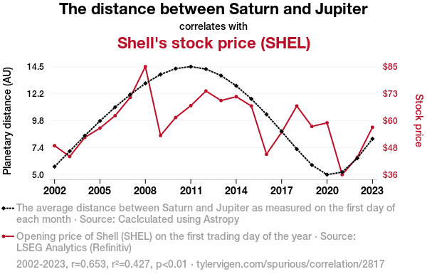 - The spurious research paper: Stellar Investing: The Celestial Correlation Between Saturn-Jupiter Distance and Shell's Stock Price